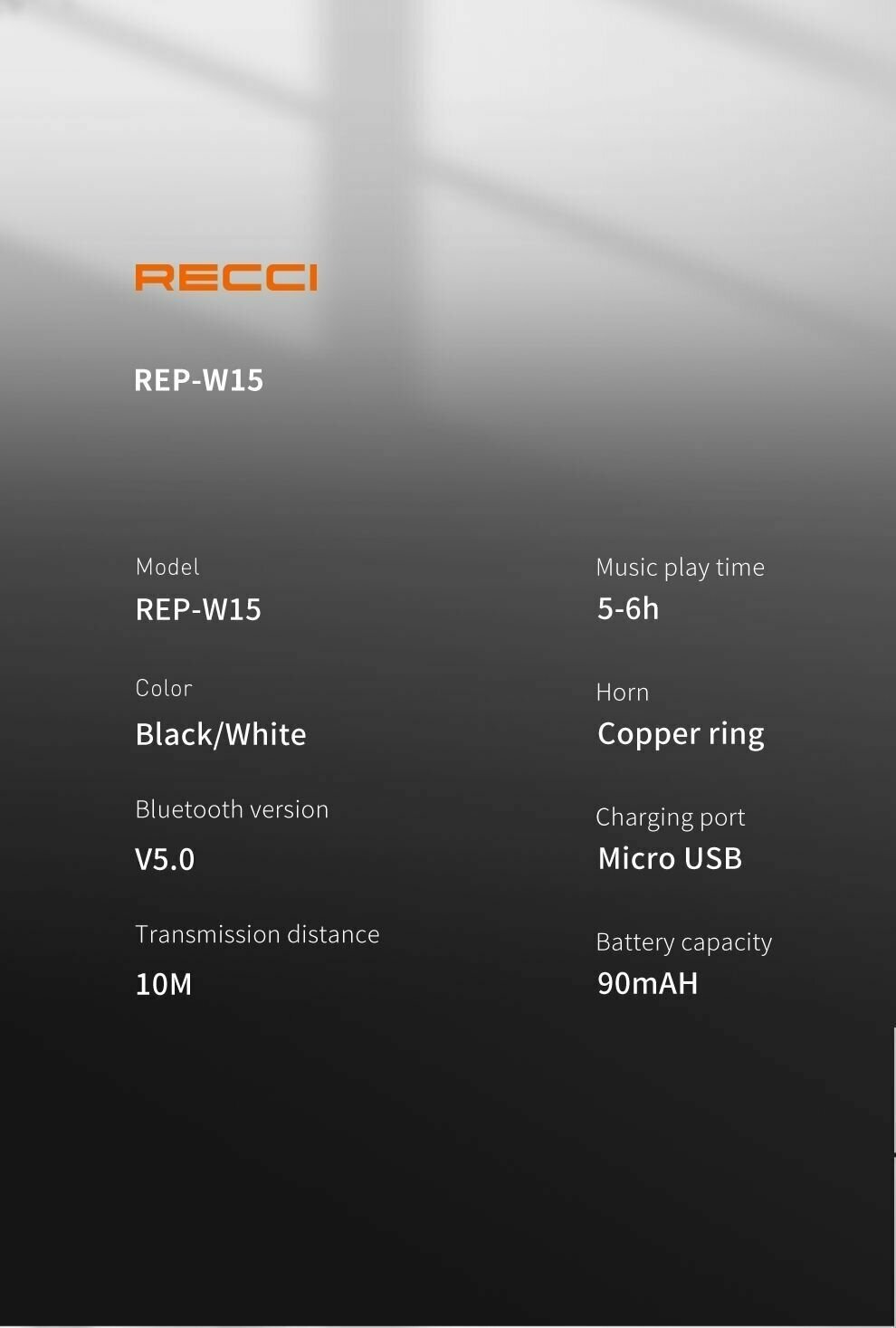 Wireless headset Recci REP-W15 Single Bluetooth Earphone, white