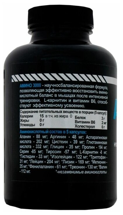 Type: amino acid, amino acid complex, formulation: capsules/tablets, main ingredient: aspartic acid, glutamic acid, leucine, dietary features: aspartame free, gluten free, lactose free, b