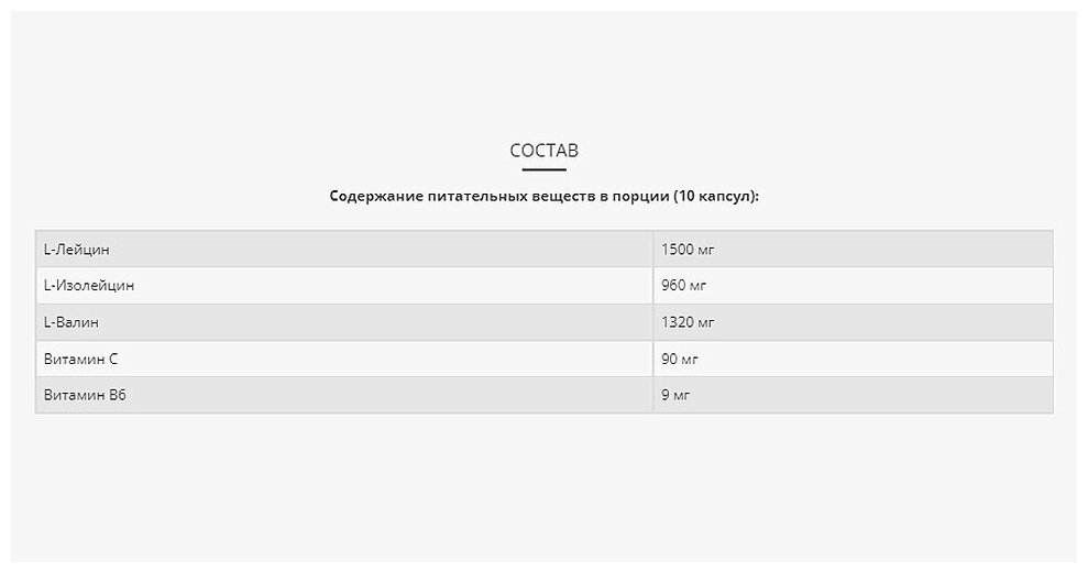 Type: BCAA, amino acid, formulation: capsules/tablets, main ingredient: valine, isoleucine, leucine, dietary features: aspartame free, gluten free, lactose free, maltodextrin free, sucralose free