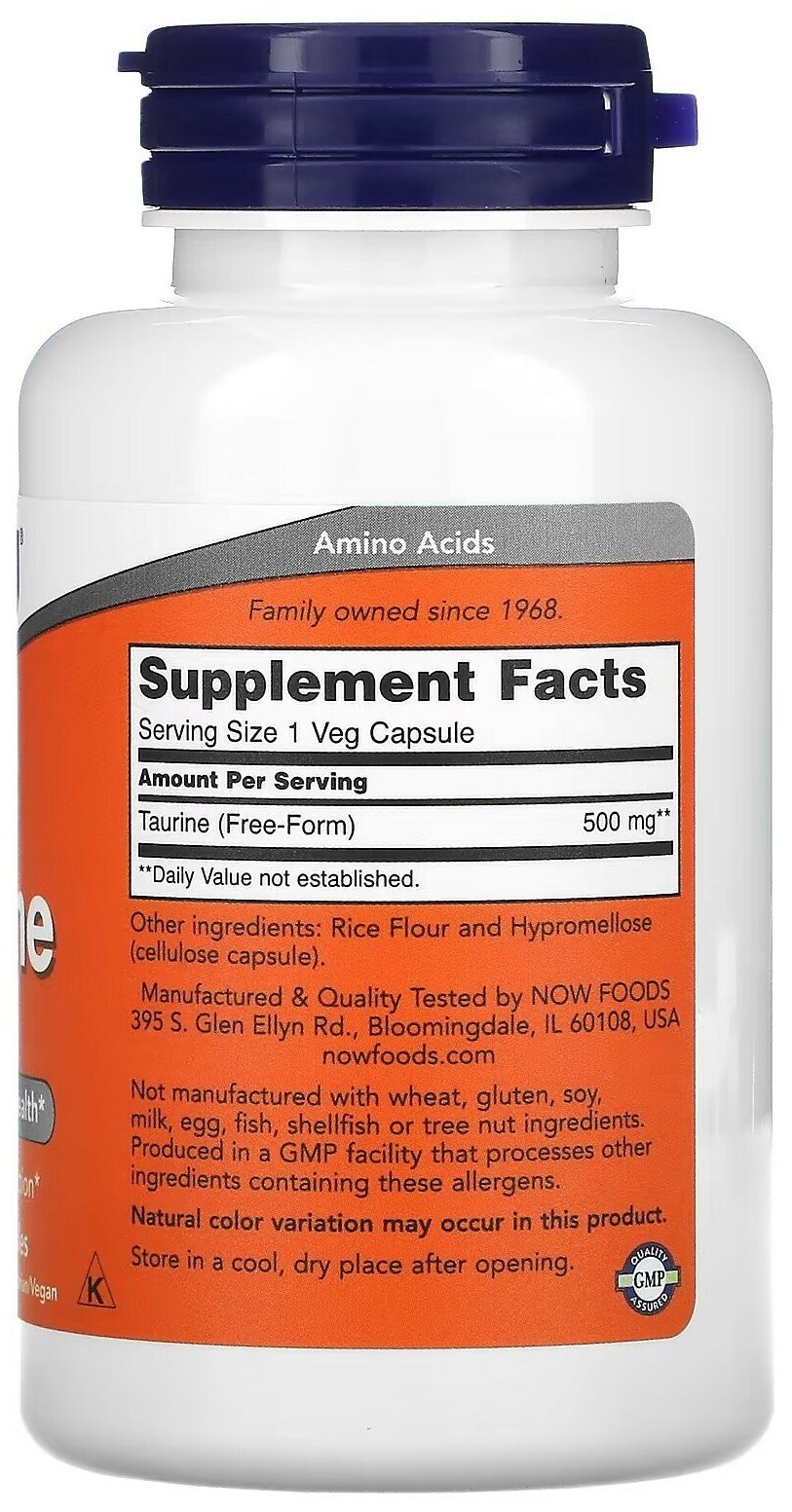 NOW Taurine Amino Acid 500 mg 100 Capsules