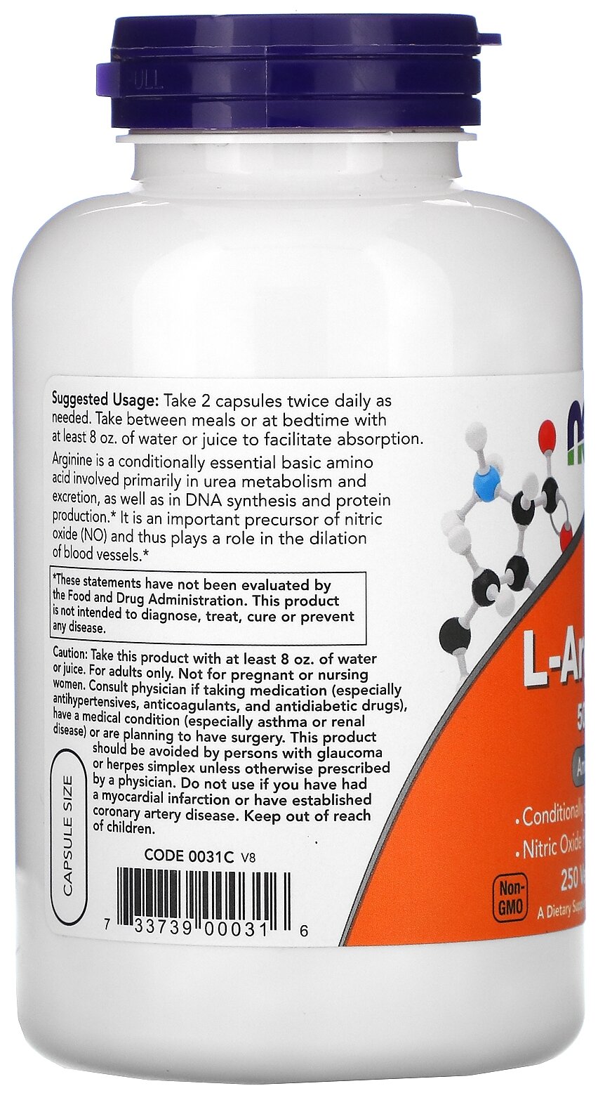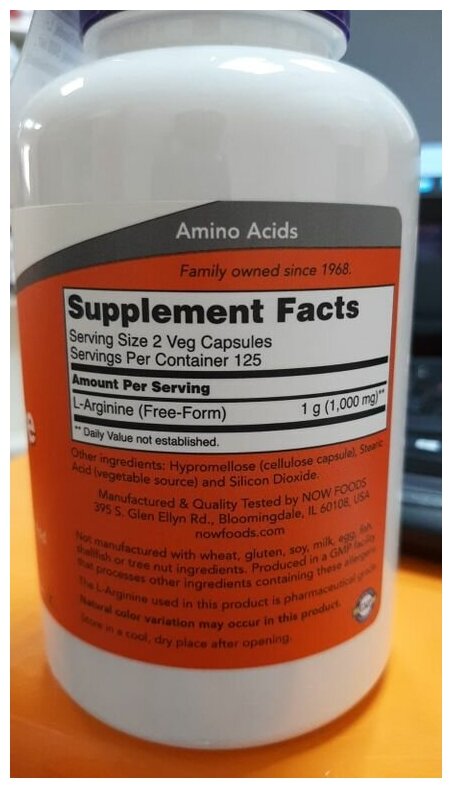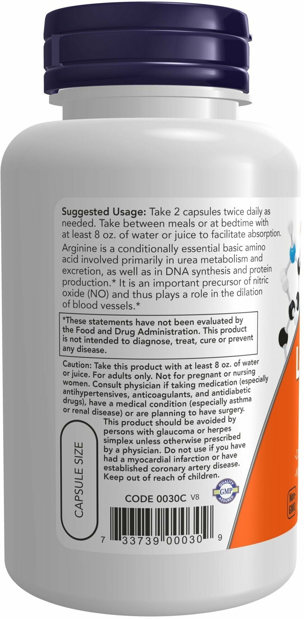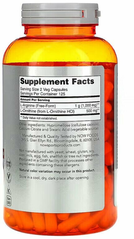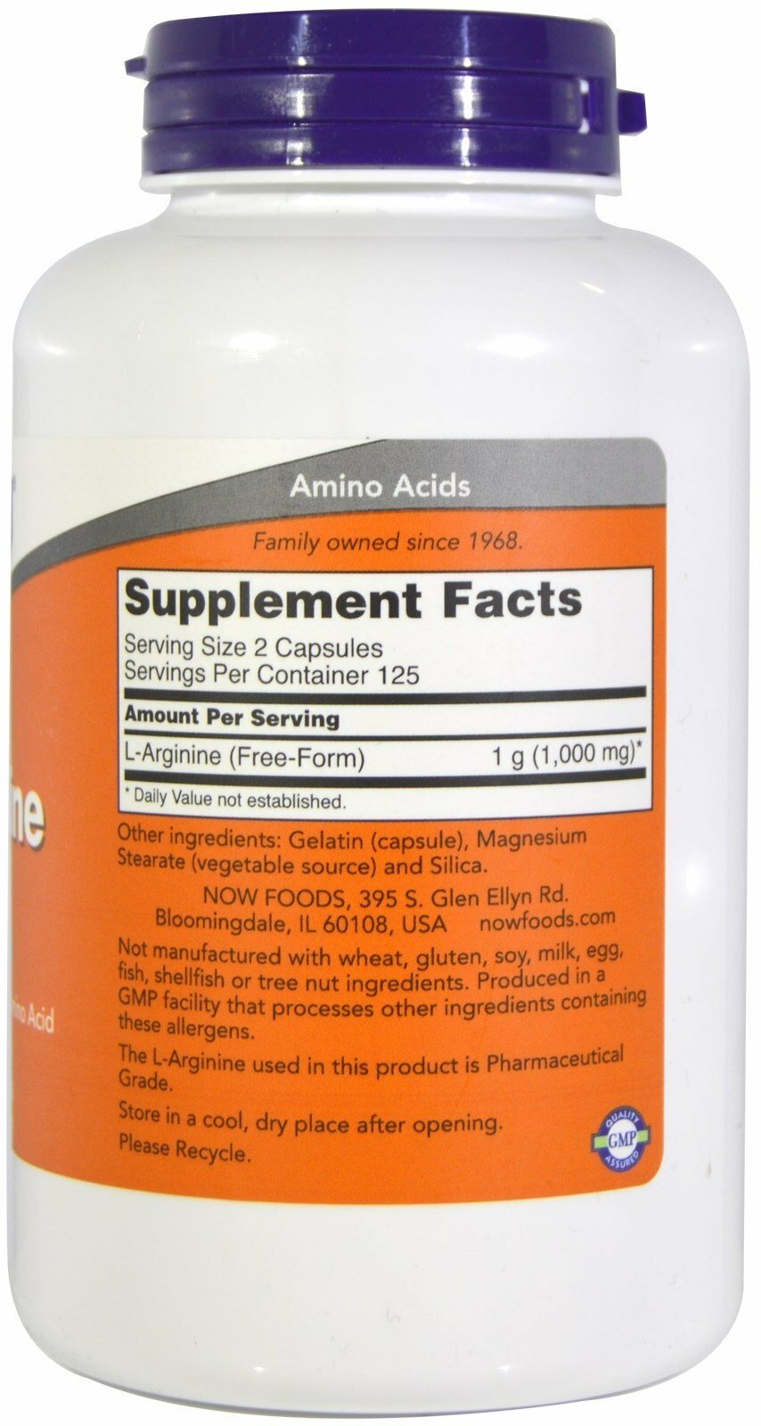 Per 1 capsule: L-arginine free form 500 mg, hypromellose cellulose capsule, vegetable source stearic acid and silicon dioxide.