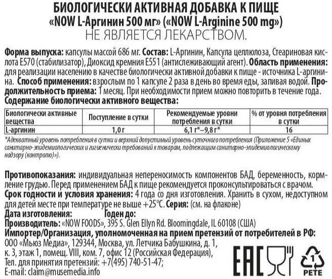 Contraindications: pregnancy, lactation, schizophrenia, herpes, viral infections and individual intolerance to the components. Arginine should be avoided by people with glaucoma or herpes unless otherwise directed by a doctor. H