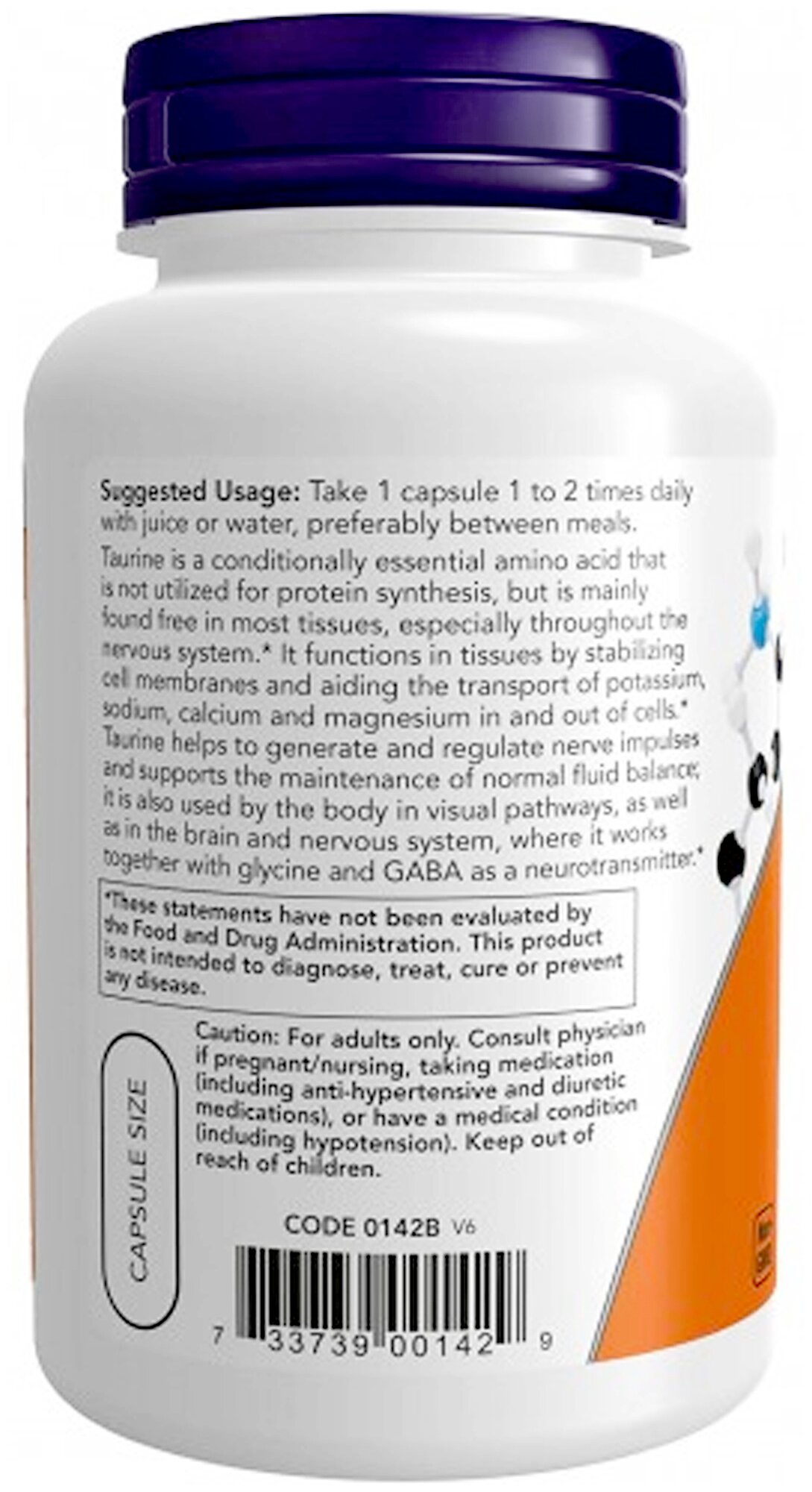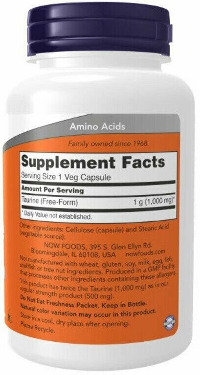 Type: Amino Acid, Antioxidants, Formulation: Capsules/Tablets, Main Ingredient: Taurine, Dietary Notes: Aspartame Free, Gluten Free, Maltodextrin Free, Sucralose Free