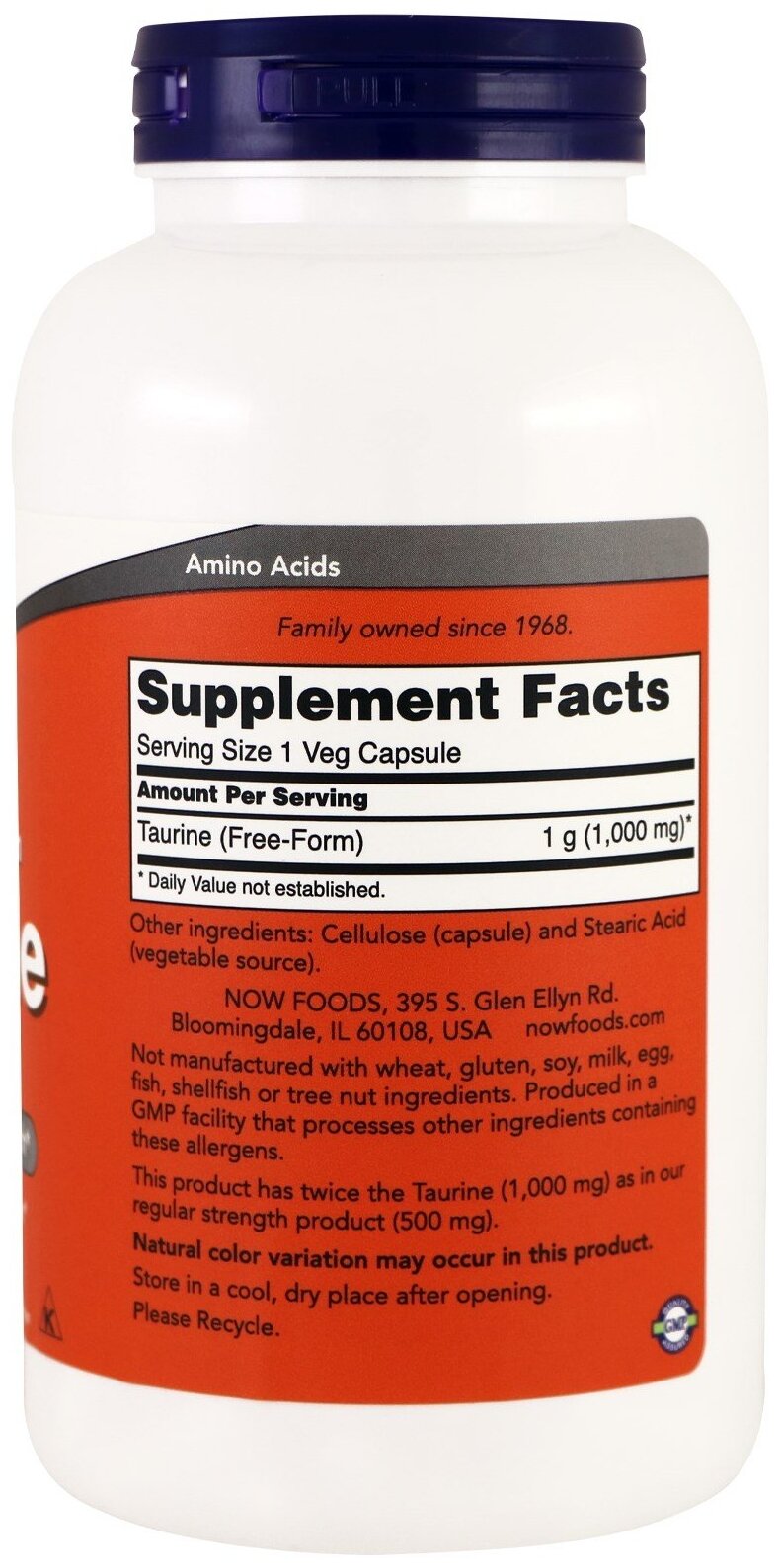 NOW Taurine 1000 mg Double Strength Amino Acid 250 Capsules