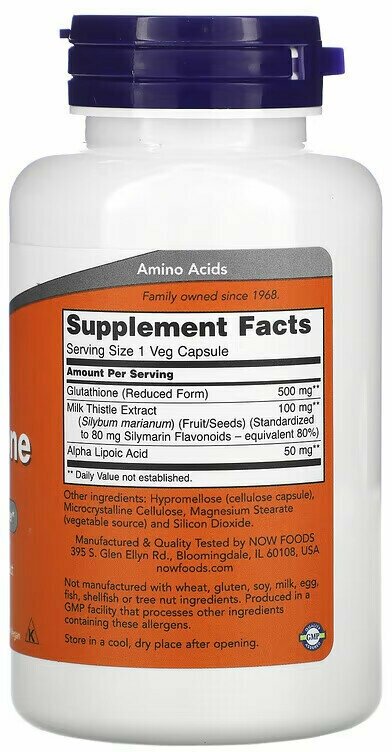 NOW Amino Acid Glutathione 250 mg 60 Capsules