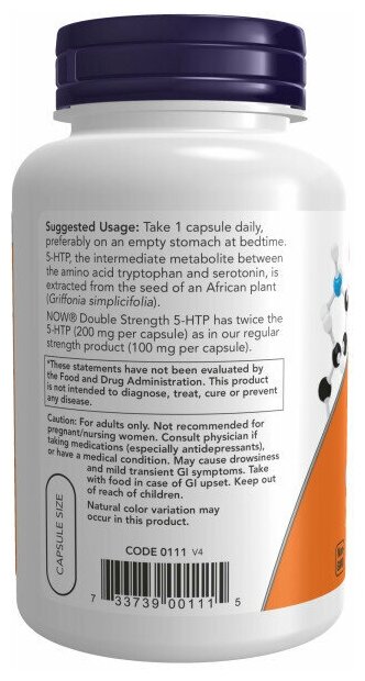 Content per capsule: niacin as nicotinamide vitamin B3 - 20 mg 125% DV, vitamin B6 from pyridoxine hydrochloride - 2 mg 118% DV, 5-hydroxytryptophan from Griffonia simplefolia seed extract