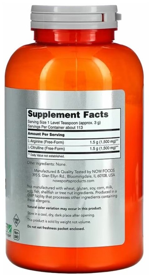 NOW Arginine & Citrulline Powder Amino Acid 340 g