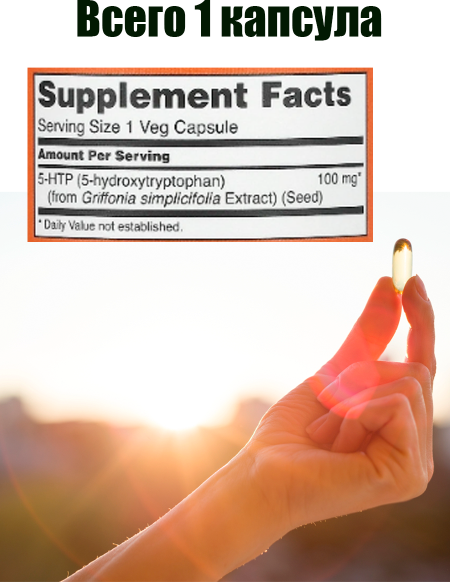 One capsule contains: 5-hydroxytryptophan 5-HTP from Griffonia simplicifolia seeds 100 mg