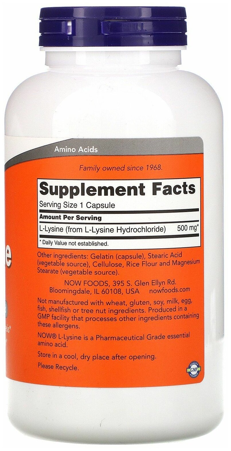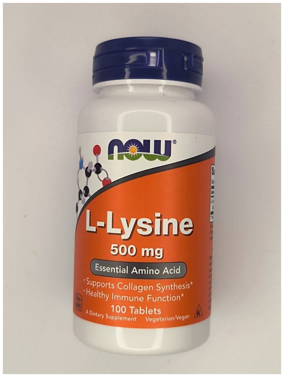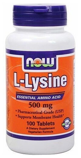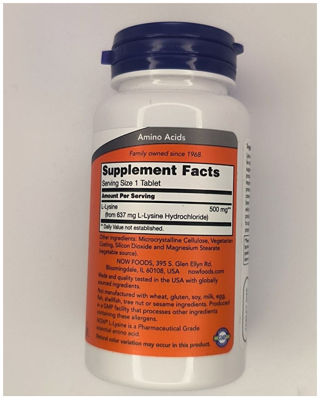 NOW L-Lysine Amino Acid 500 mg 100 Tablets