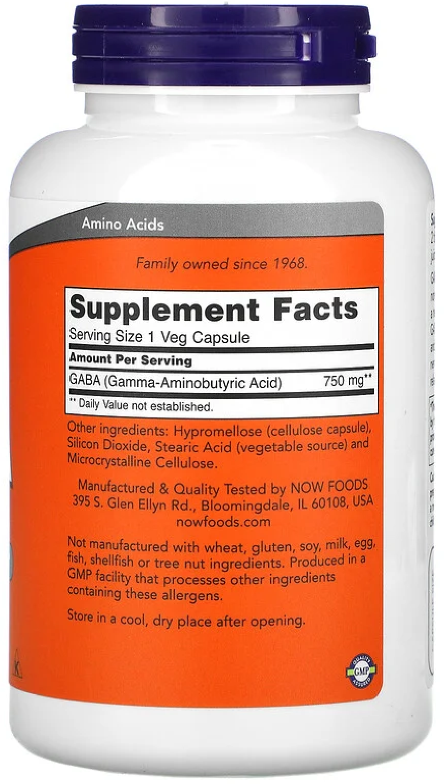 NOW GABA Amino Acid 750 mg 120 Tablets