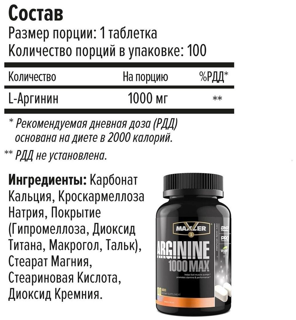 Type: amino acid, dosage form: capsules/tablets, main ingredient: arginine, dietary specifics: vegan