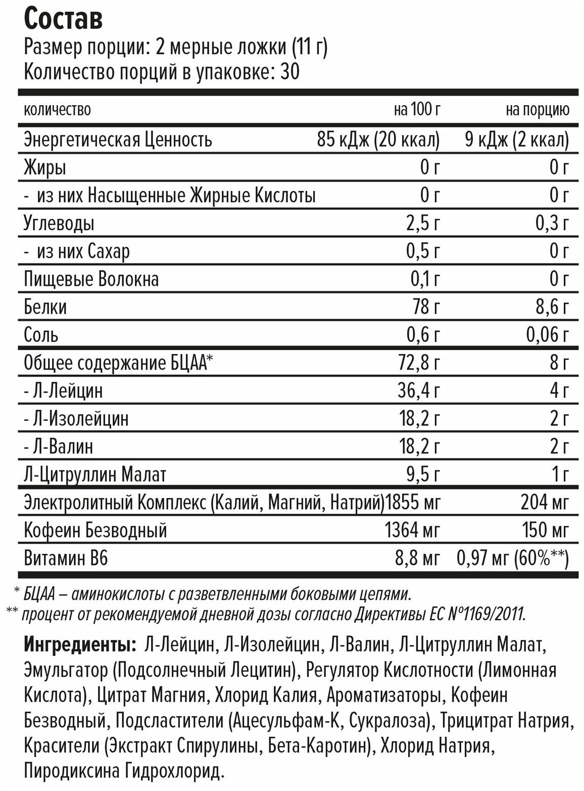 Type: BCAA, Amino Acid, Form: Powder, Main Ingredient: Citrulline, Diet: Non-GMO, No Aspartame, No Lactose, Vegan
