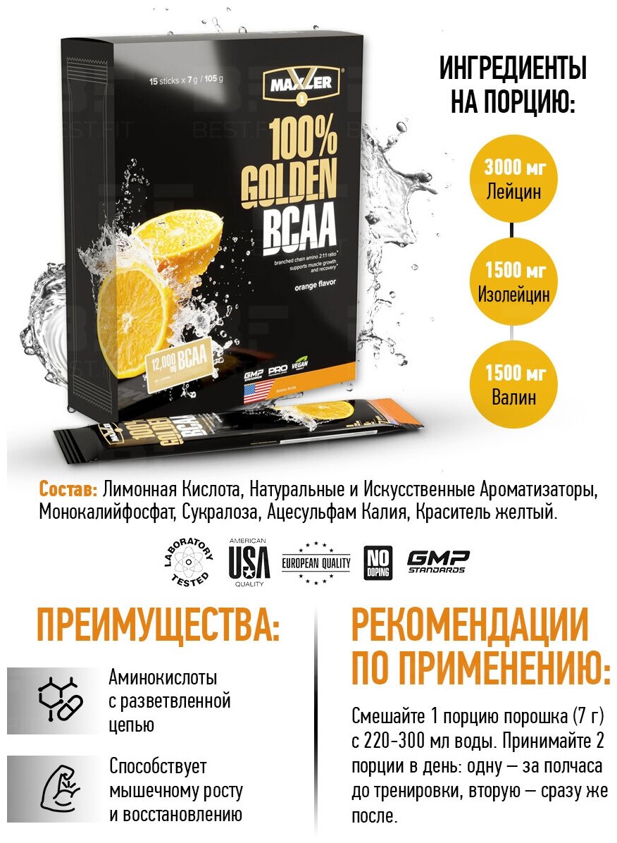 BCAA, amino acid complex: L-leucine, valine, isoleucine, leucine