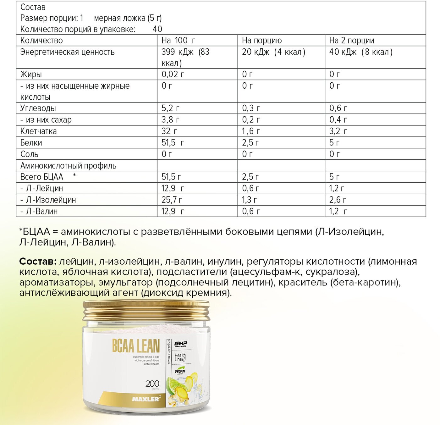 Amino acids Maxler BCAA Lean 2:1:1 with fiber, powder 200g Cucumber-mint | Sports nutrition BCAA | For men and women, weight loss and muscle gain