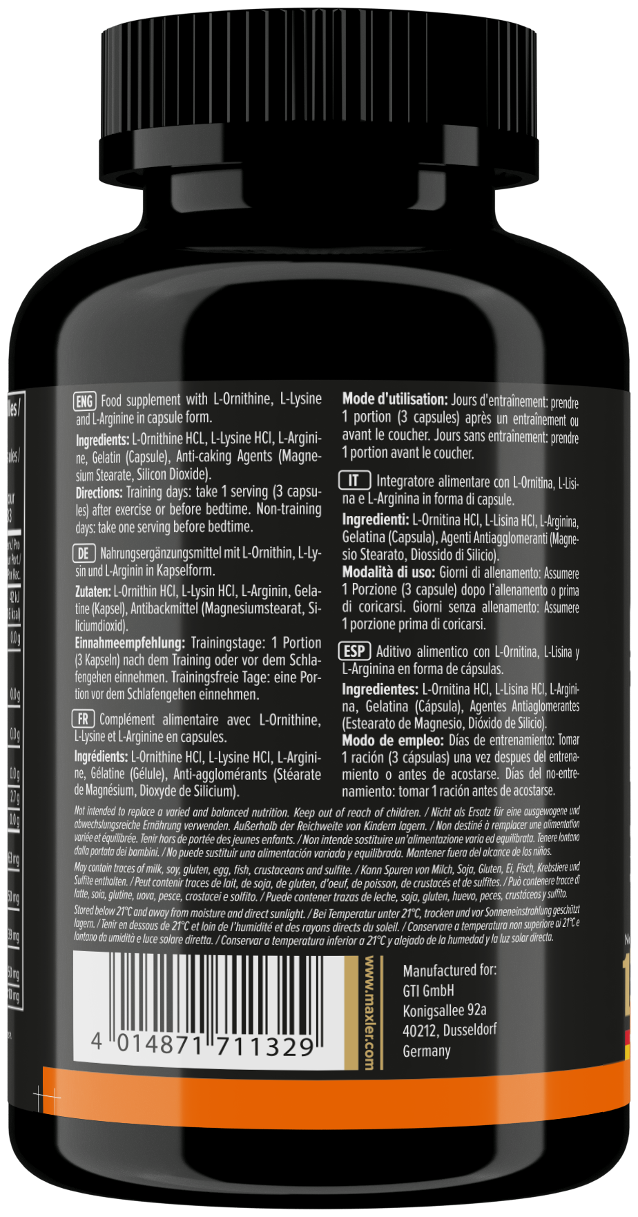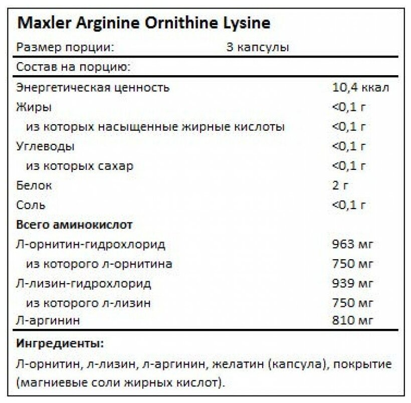Amino acids Maxler Arginine-Ornithine-Lysine, 100 capsules | L-Ornithine, L-Lysine, L-Arginine | For men and women | For hair, potency, sports