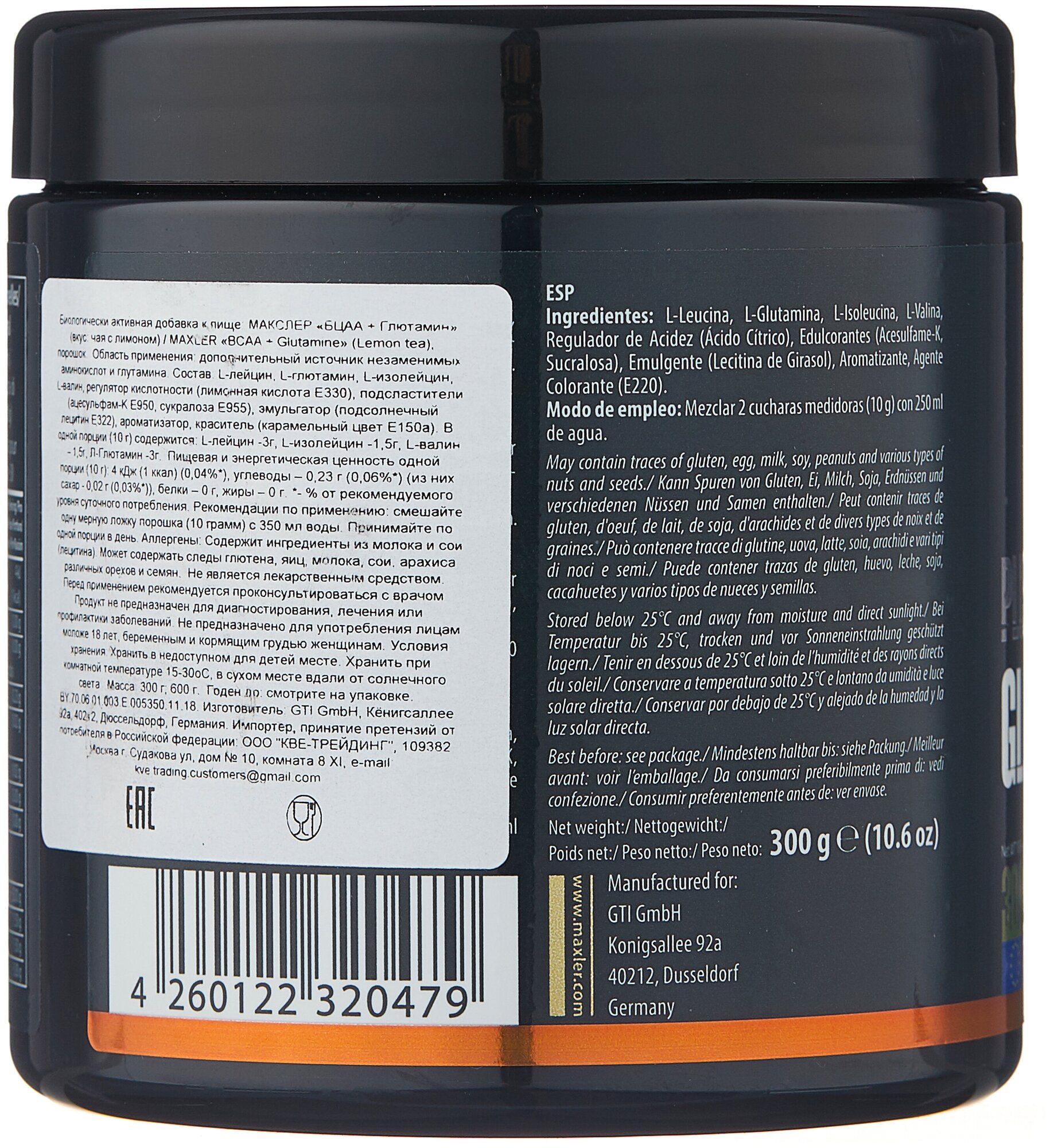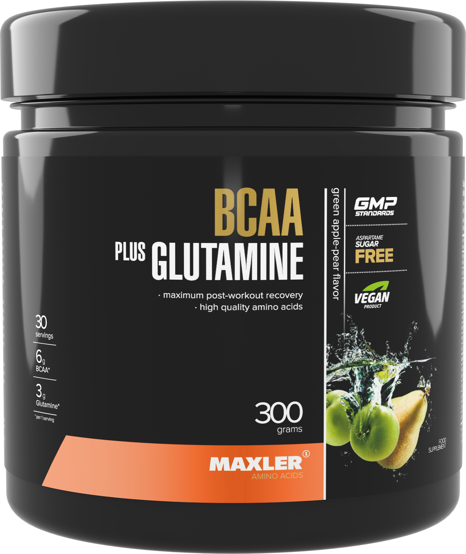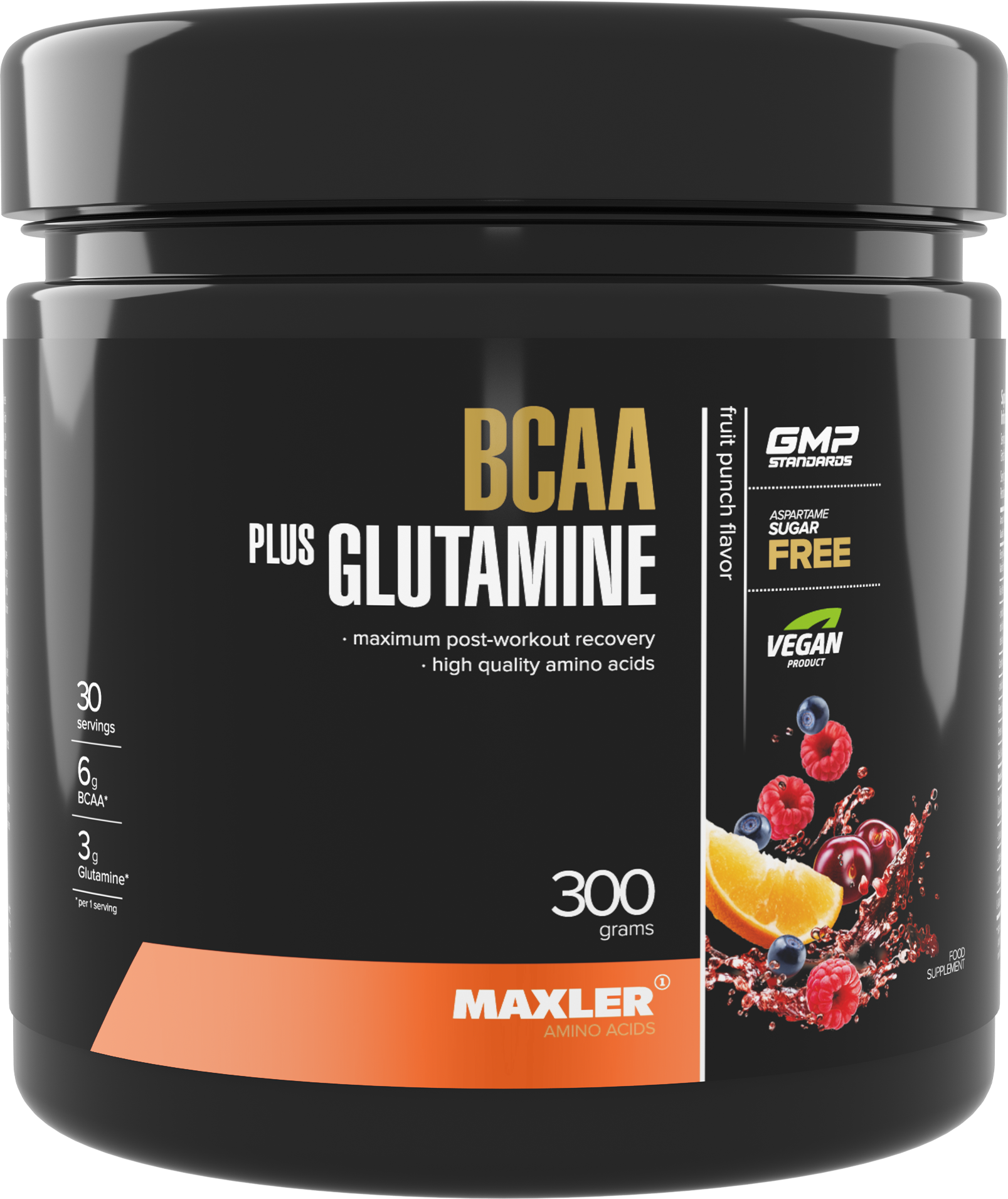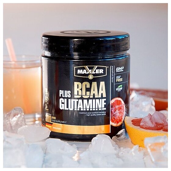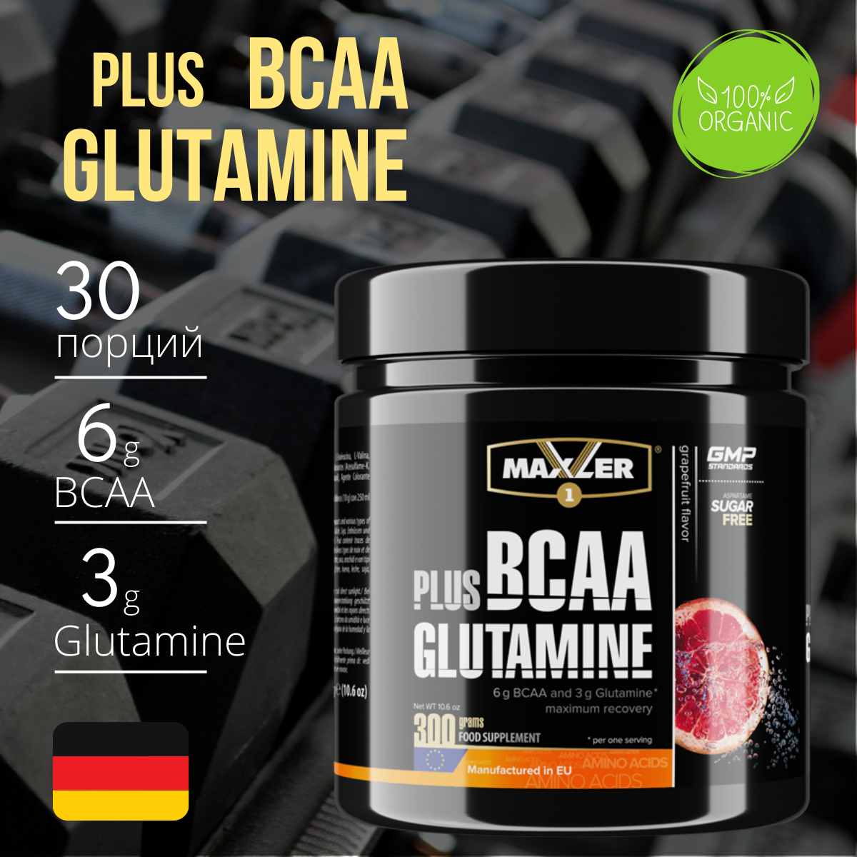 Amino acids Maxler BCAA + Glutamine, powder 300g Grapefruit | BCAA and L-Glutamine | Sports nutrition for weight loss and weight gain | For skin and hair
