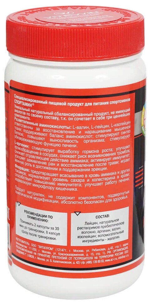 Type: BCAA, amino acid, amino acid complex, formulation: capsules/tablets, main ingredient: arginine, valine, isoleucine, leucine