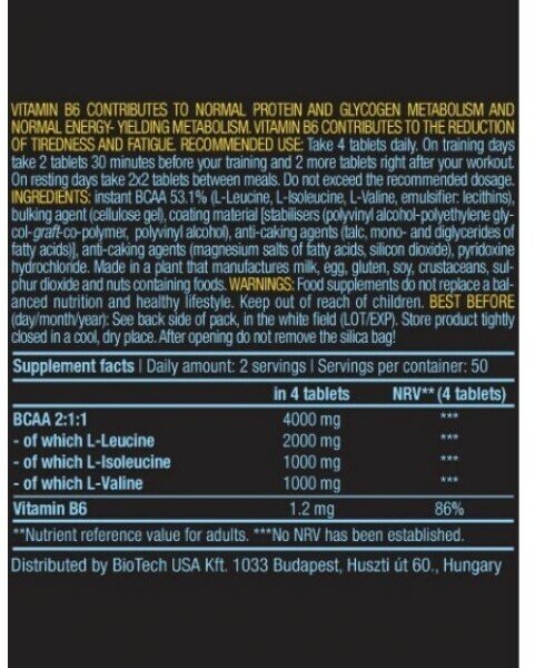 BCAA BioTechUSA BCAA+B6 100 tablets