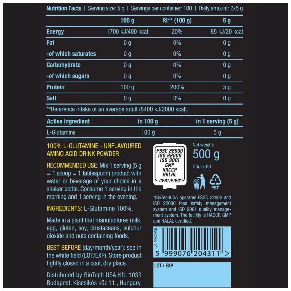 BioTechUSA Amino Acid 100% L-Glutamine 500g