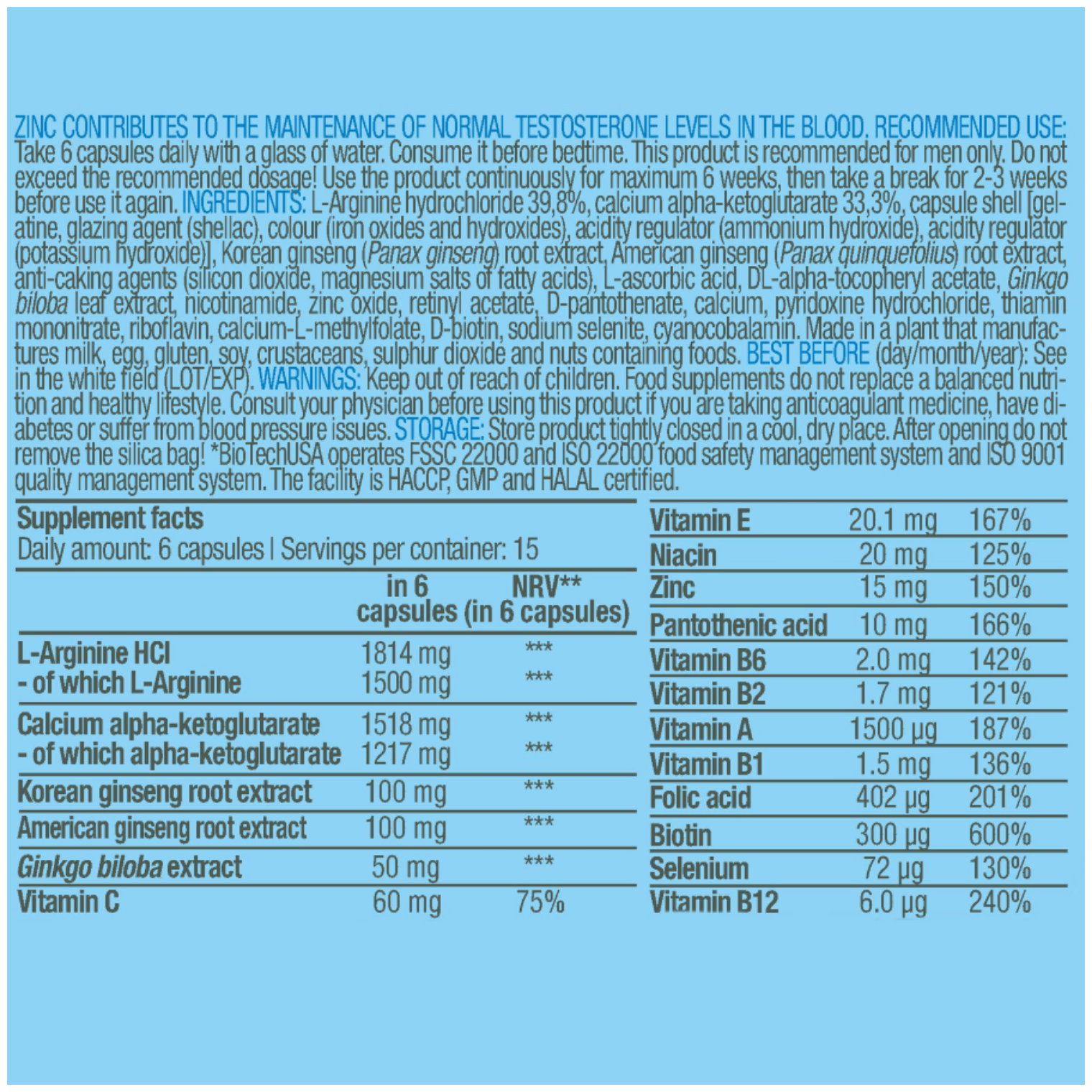 Type: amino acid complex, dosage form: capsules/tablets, main ingredient: arginine