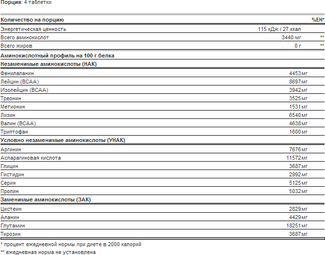 Description: Type: amino acid, amino acid complex, formulation: capsules/tablets, main ingredient: alanine, arginine, valine, histidine, glycine, glutamic acid, isoleucine, leucine, lysine, methionine, proline, serine, tyrosine,