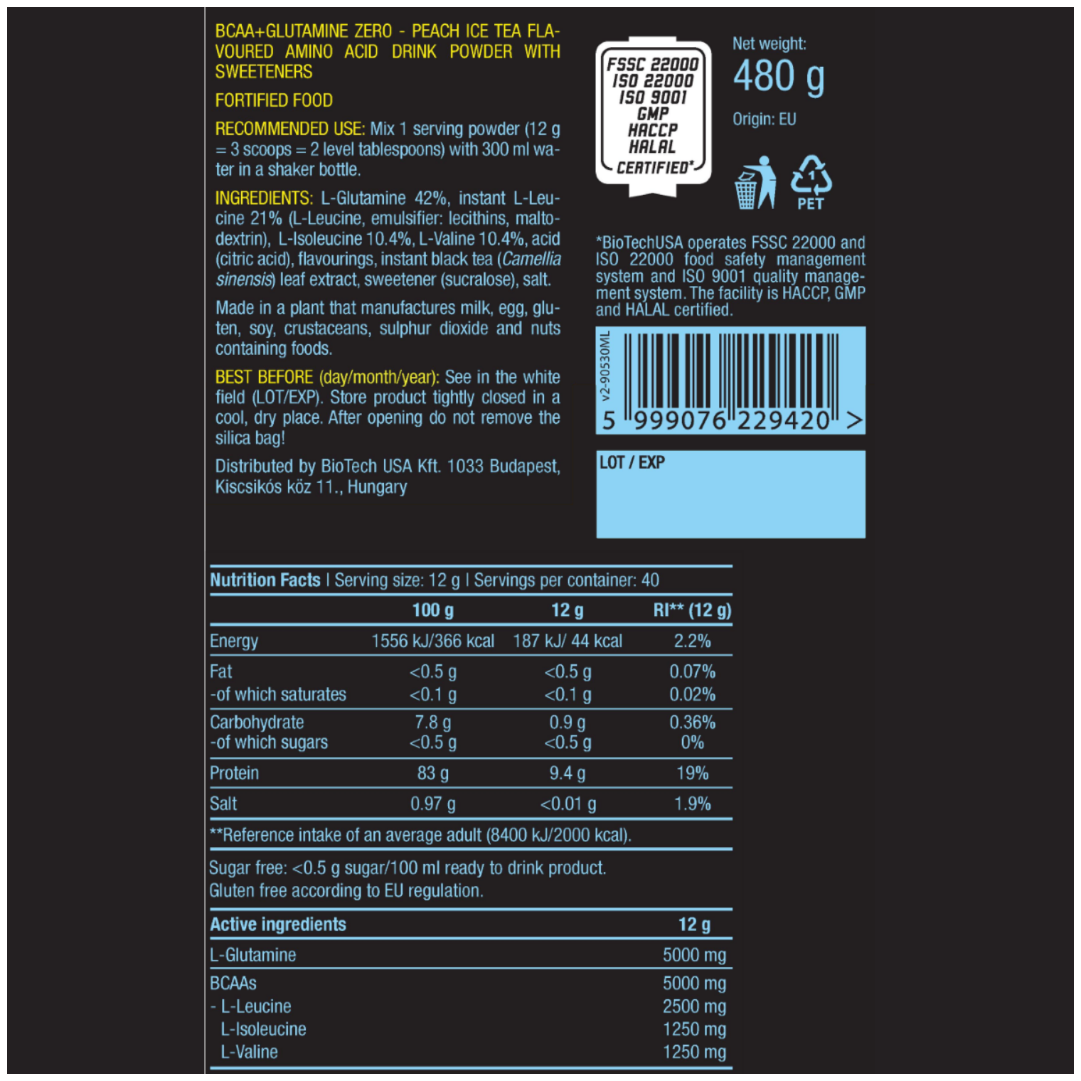 Amino acids BCAA+Glutamine Zero BioTech USA 480 g lemon