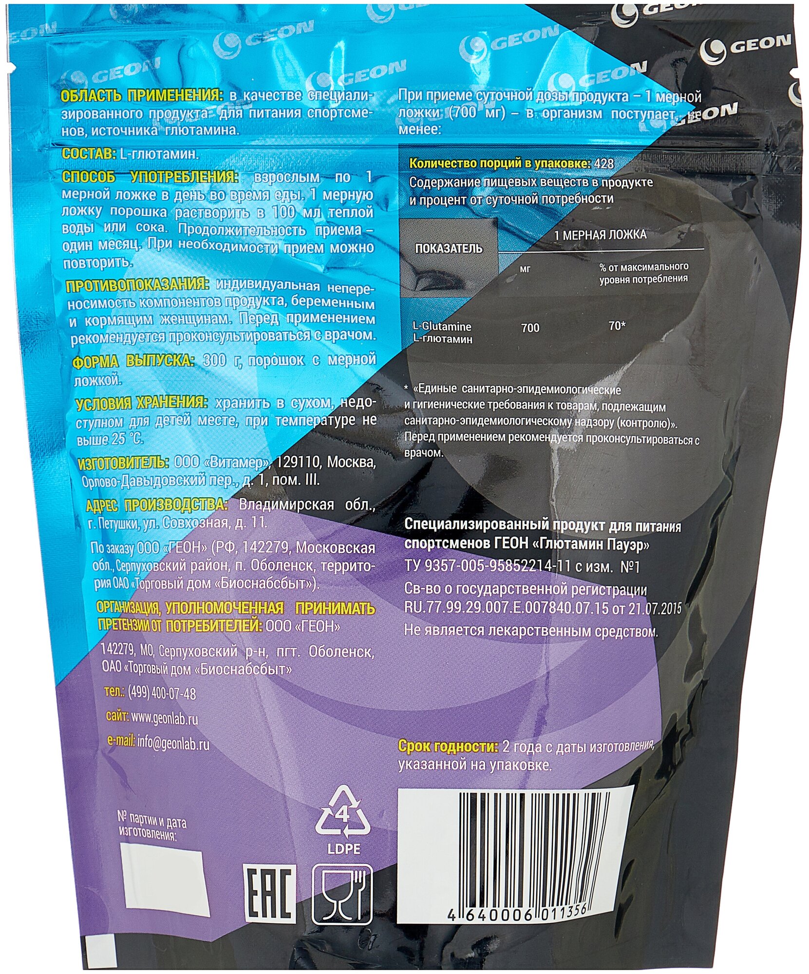 Type: amino acid, dosage form: powder, main ingredient: glutamine, dietary features: no aspartame, no gluten, no lactose, no maltodextrin, no sucralose