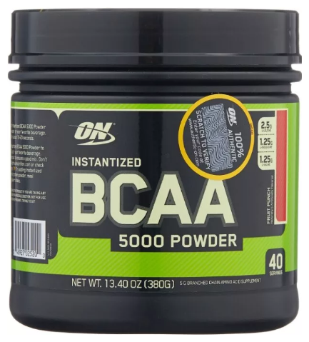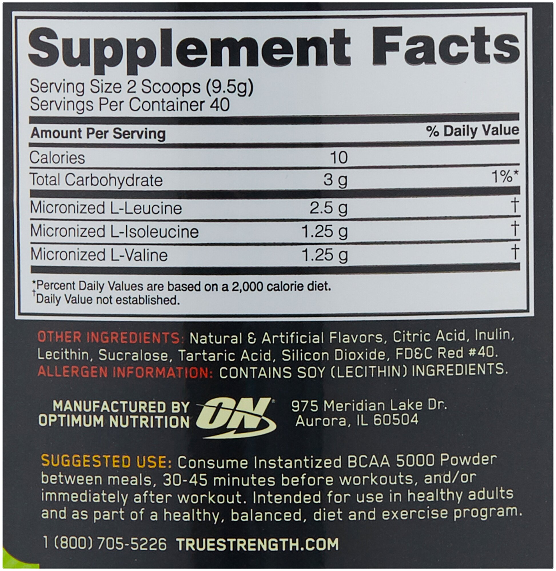 Amino Acids & BCAAs for Athletes Optimum Nutrition Instantized BCAA 5000 Powder 13.4 oz Fruit Punch