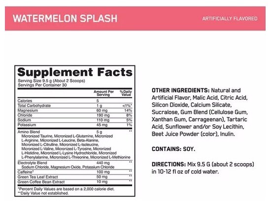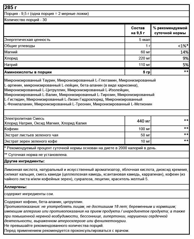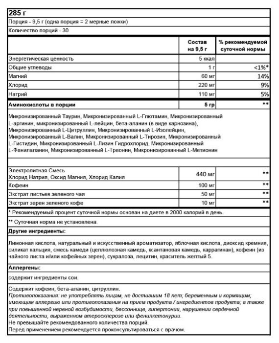 Type: Amino acid, amino acid complex: alanine, arginine, valine, histidine, glutamine, isoleucine, leucine, lysine, methionine, taurine, tyrosine, threonine, phenylalanine, citrulline