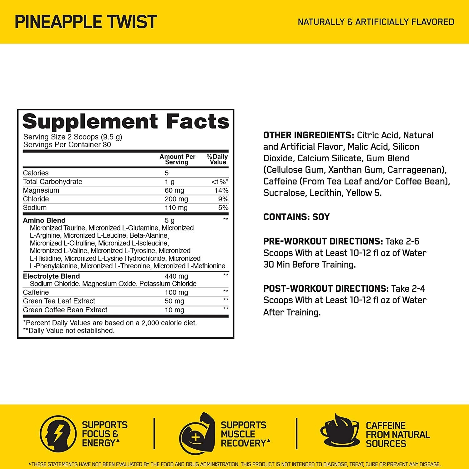 Amino Acids & BCAAs for Athletes Optimum Nutrition Essential Amino Energy + Electrolytes 10.05 oz Pineapple Twist