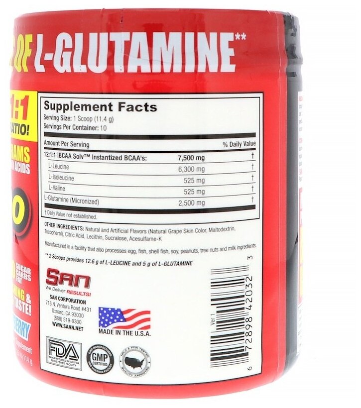 Description: Type: BCAA, amino acid complex, formulation: powder, main ingredient: valine, isoleucine, leucine, dietary features: aspartame-free, gluten-free