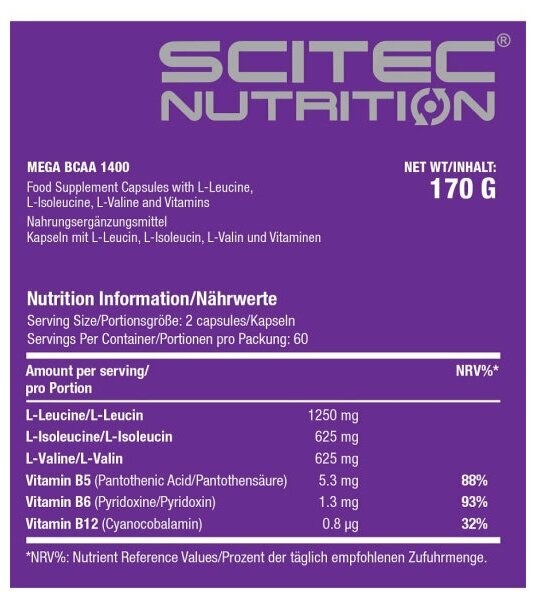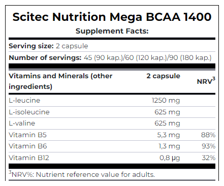 BCAA Scitec Nutrition MEGA BCAA 1400 180 capsules
