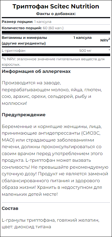 Scitec Nutrition Amino Acid Tryptophan 60 capsules