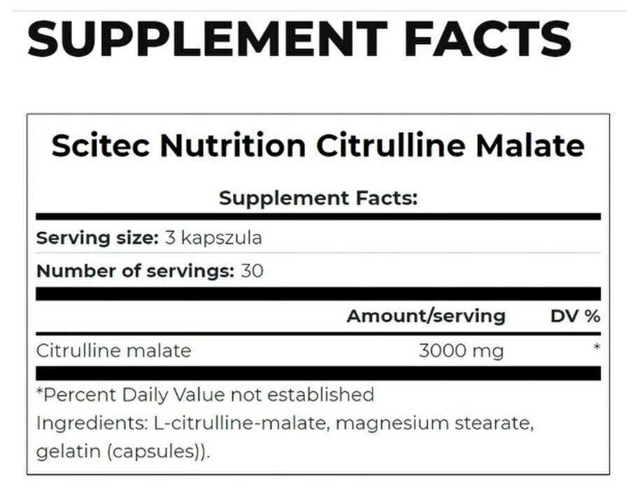 Type: amino acid, dosage form: capsules/tablets, main ingredient: citrulline, dietary features: no aspartame, no maltodextrin, no sucralose