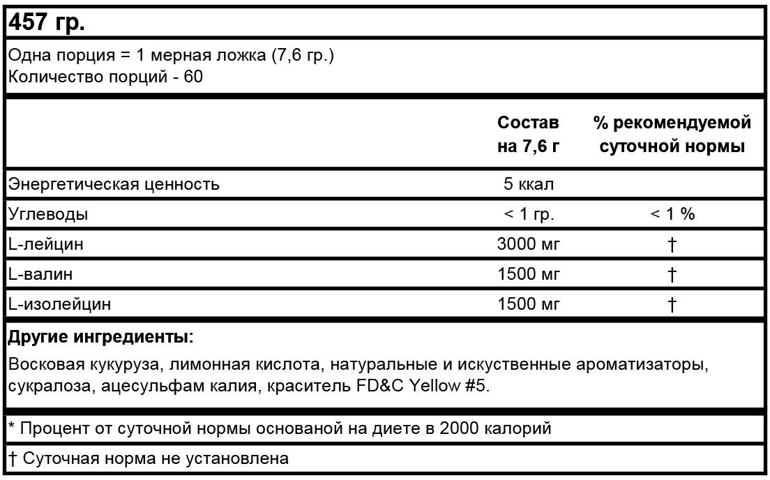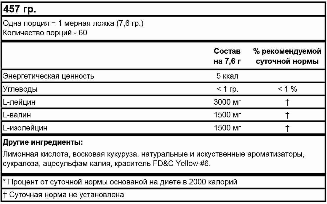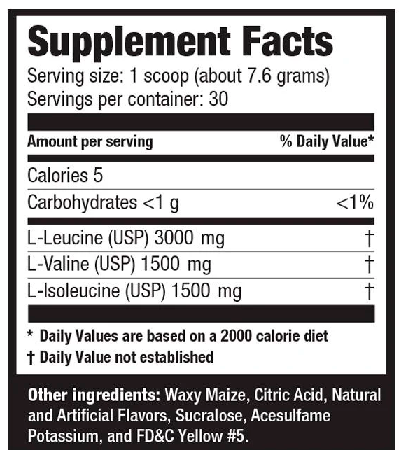 Type: BCAA, Amino Acid Complex, Liquid Amino Acids, Presentation Form: Powder, Main Ingredient: Valine, Isoleucine, Leucine, Dietary Considerations: No Aspartame