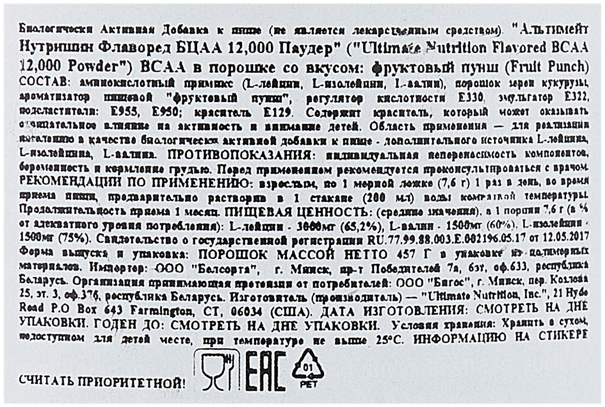 BCAA Ultimate Nutrition BCAA 12000 450g