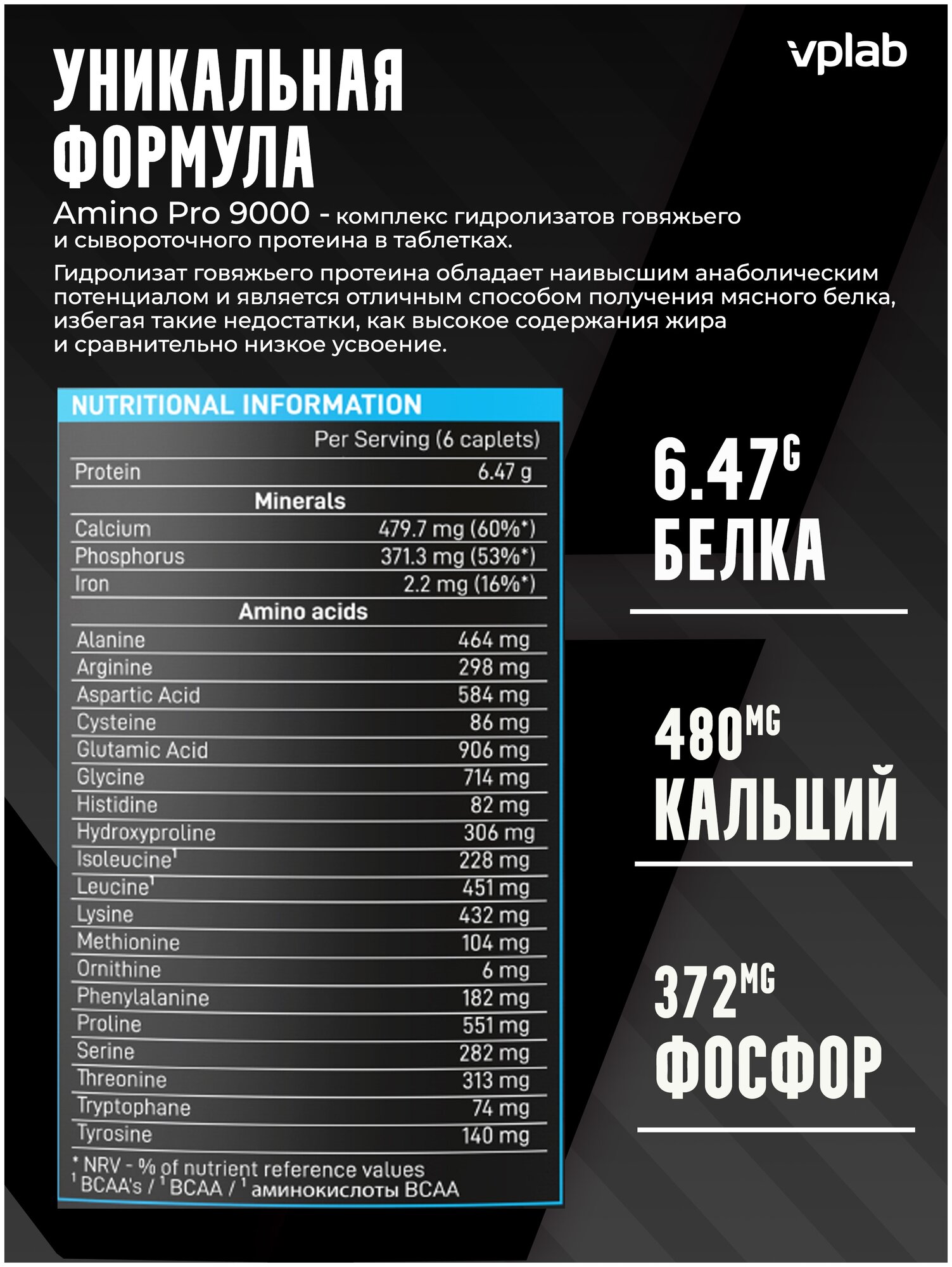 Purpose: health promotion, recovery, muscle mass gain, strength indicators, endurance increase, energy increase; Serving Size Per Capsule/Tablet: 6; purpose: health promotion, recovery
