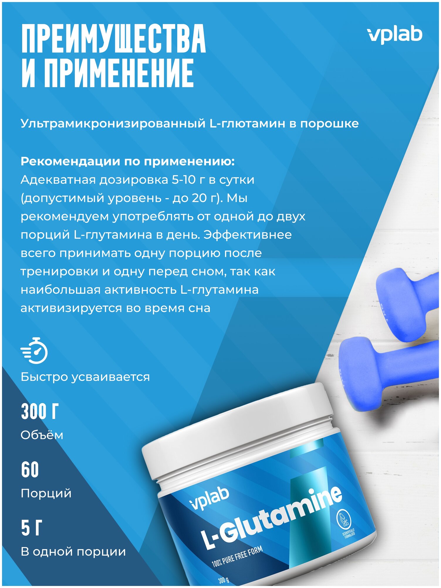 Amino acid VP Laboratory L-Glutamine 300 g