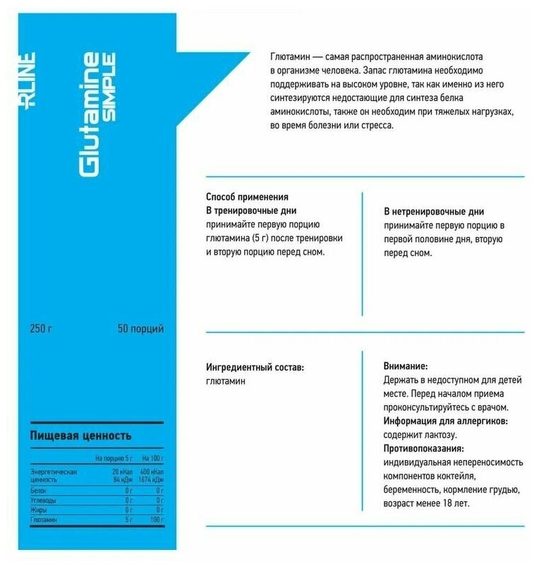 Glutamine RLine Glutamine Simple, 250 g