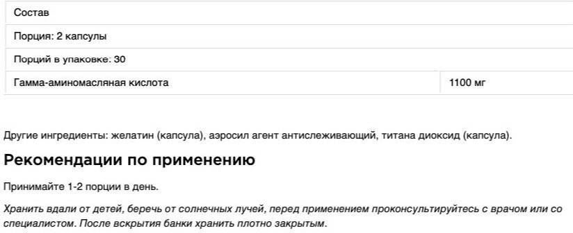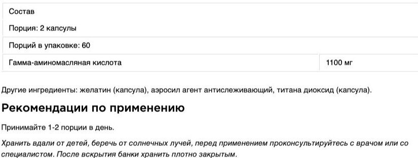 Description: Type: Amino Acid, Amino Acid Complex, Muscle Growth, Amino Acid Complex, Other Amino Acids, Composition: Capsules/Tablets, Main Ingredient: GABA, Dietary Considerations: No Aspartame, No M