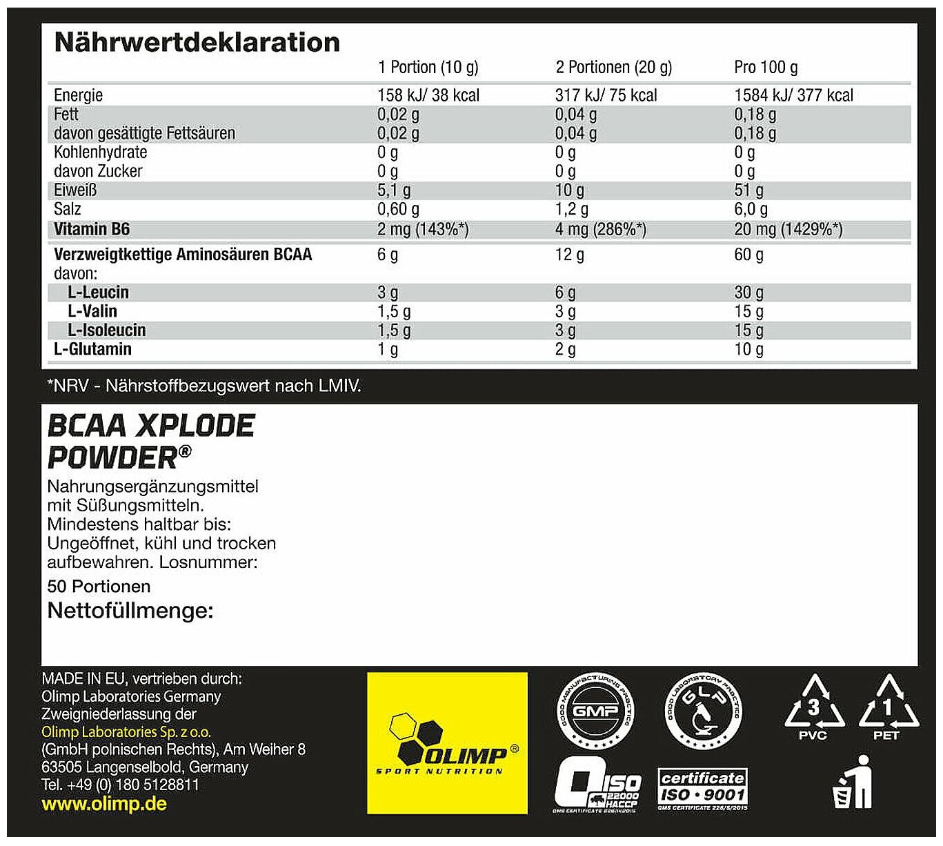 Type: BCAA, Form: Powder, Main Ingredient: L-Valine, L-Isoleucine, L-Leucine, Glutamine, Dietary: Aspartame Free, Gluten Free, Lactose Free, Maltodextrin Free