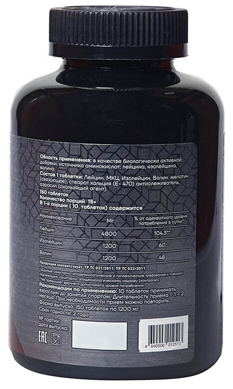 Type: BCAA, amino acid, formulation: capsules/tablets, main ingredient: leucine, dietary specifics: no aspartame, no lactose