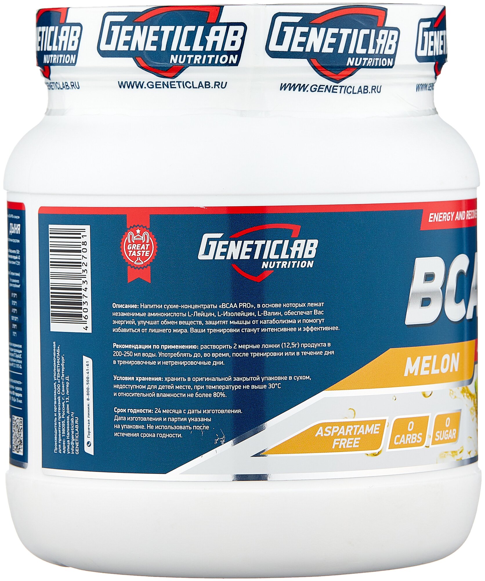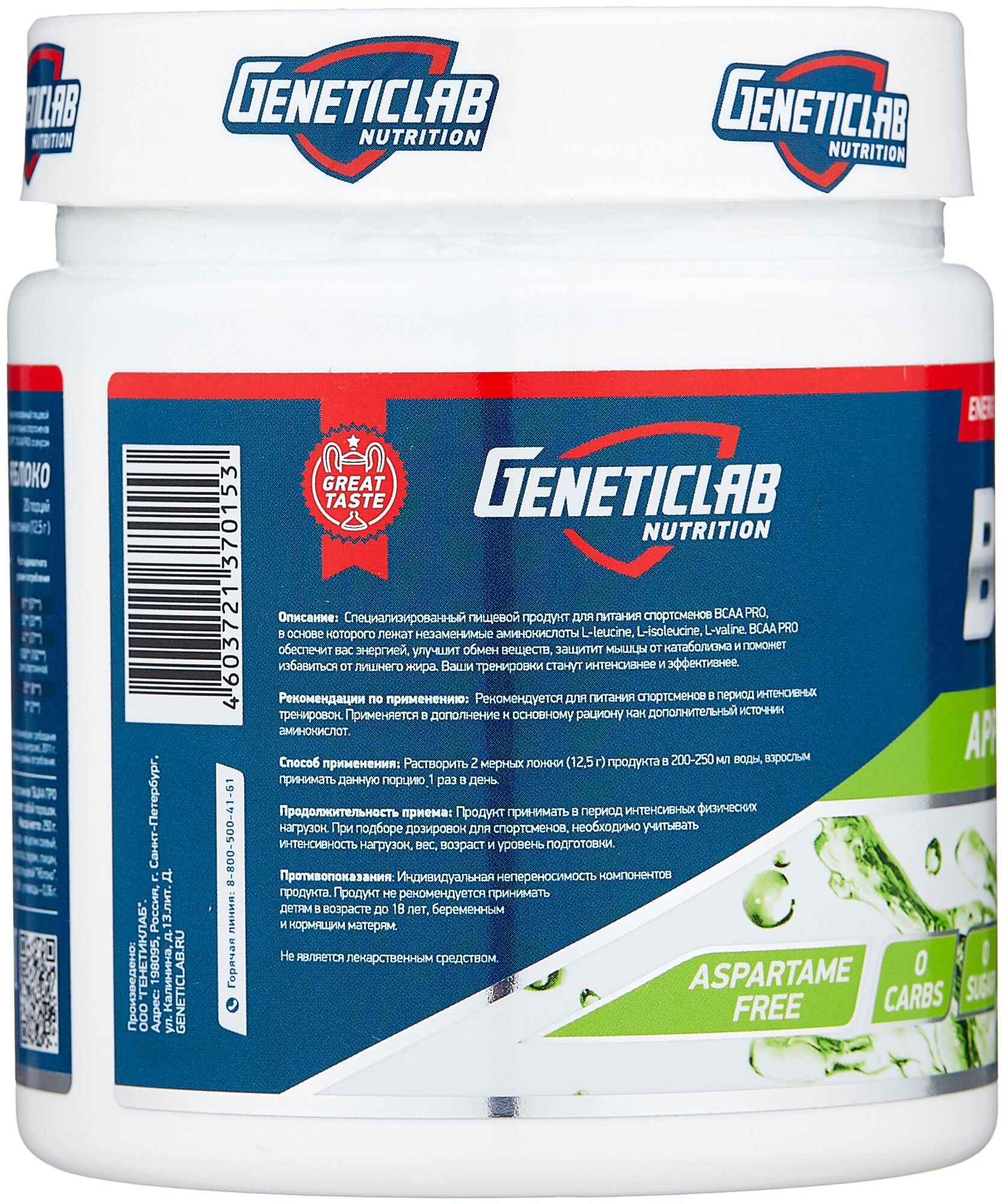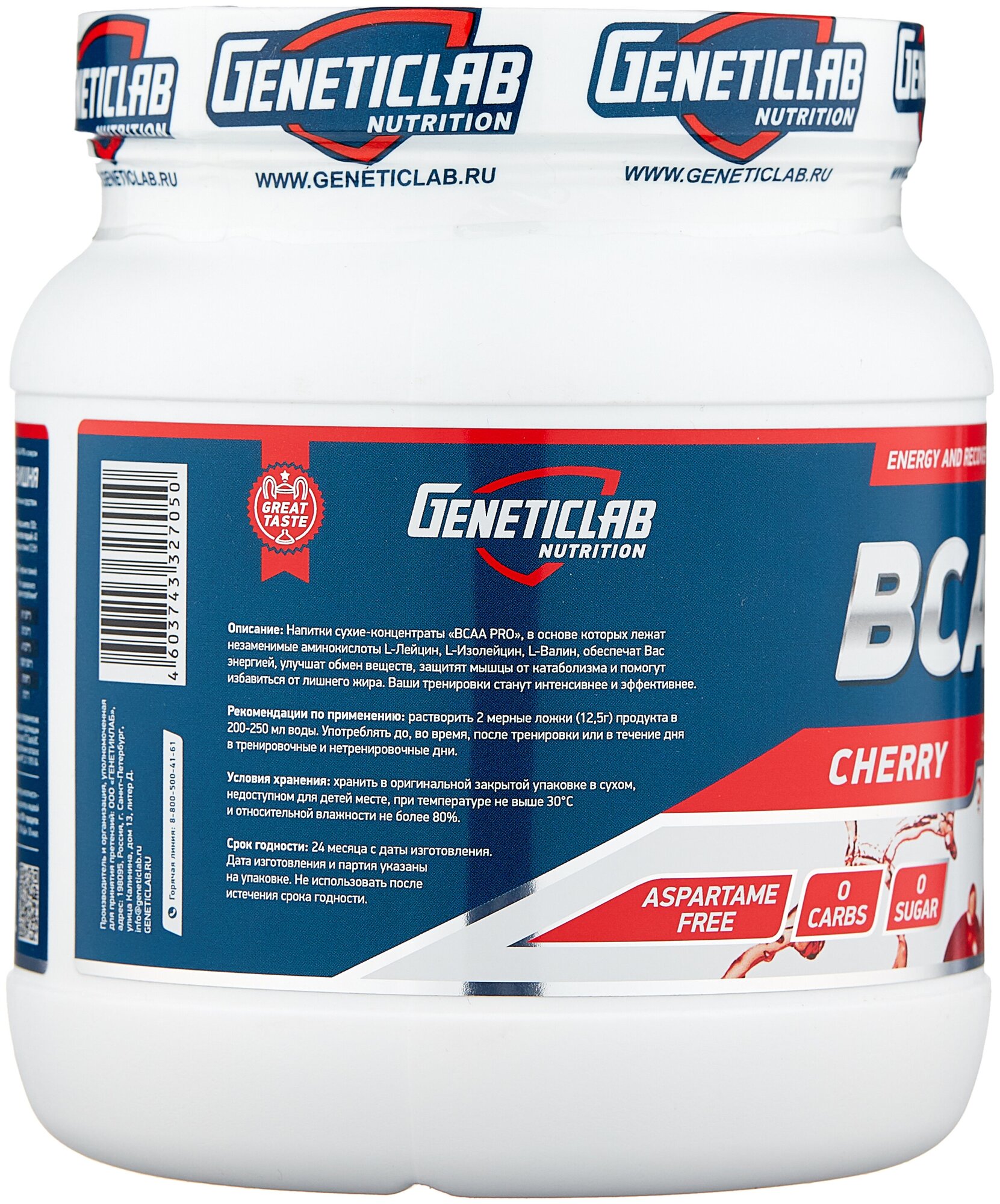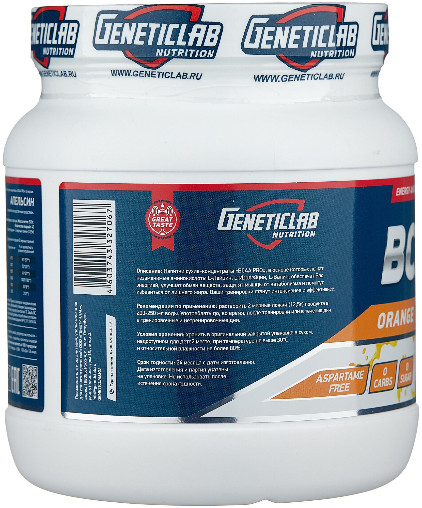 20 servings; bcaa ratio 4:1:1, l-leucine - 4175 mg per serving, l-isoleucine - 1038 mg per serving, l-valine - 1038 mg per serving; l-glutamine - 5000 mg per serving; serving size in gml: 12.5; purpose: provide you with energy, improve metabolism,
