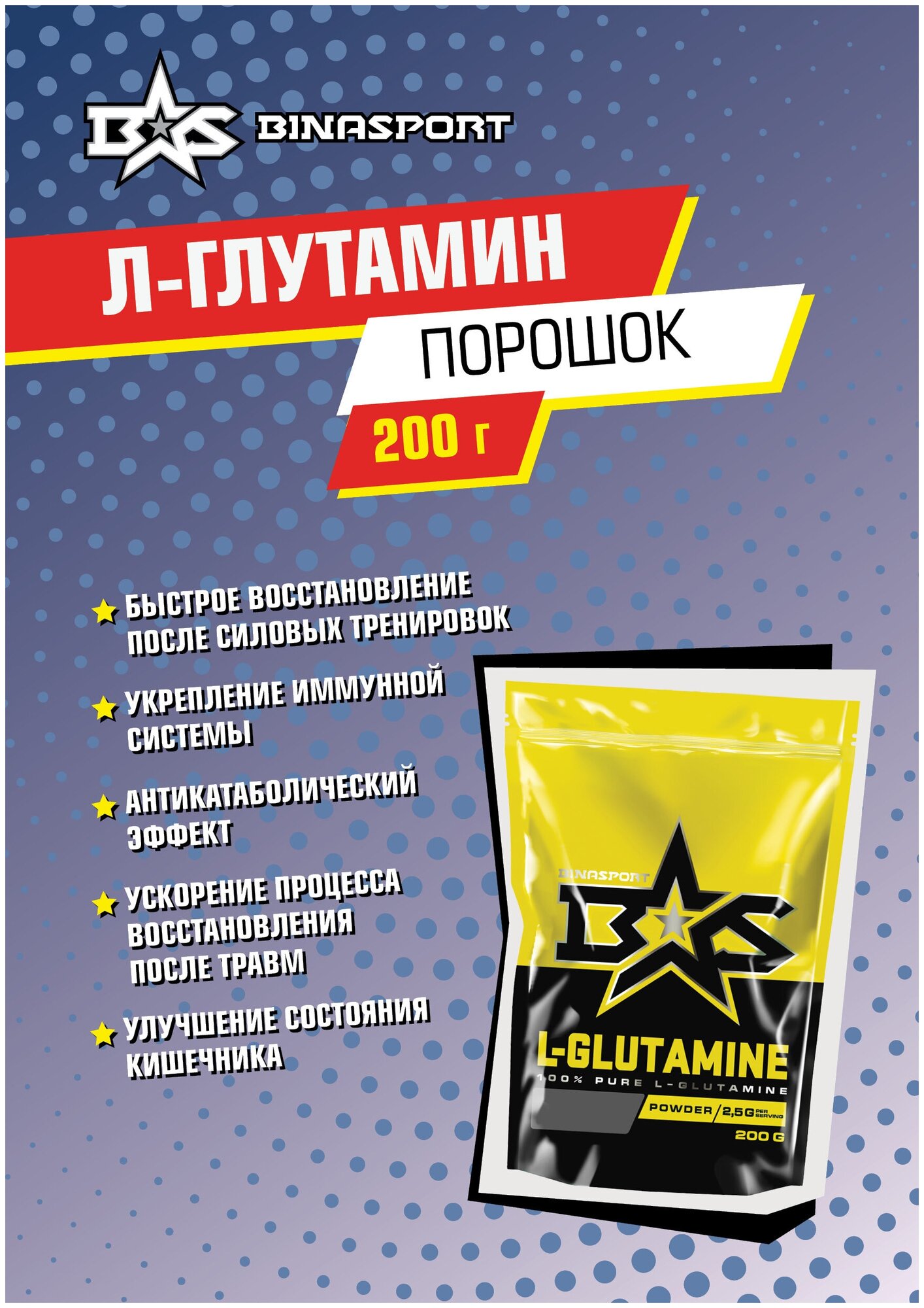 2 pack x 200g L-Glutamine powder Binasport L-GLUTAMINE Glutamine 400g orange flavor