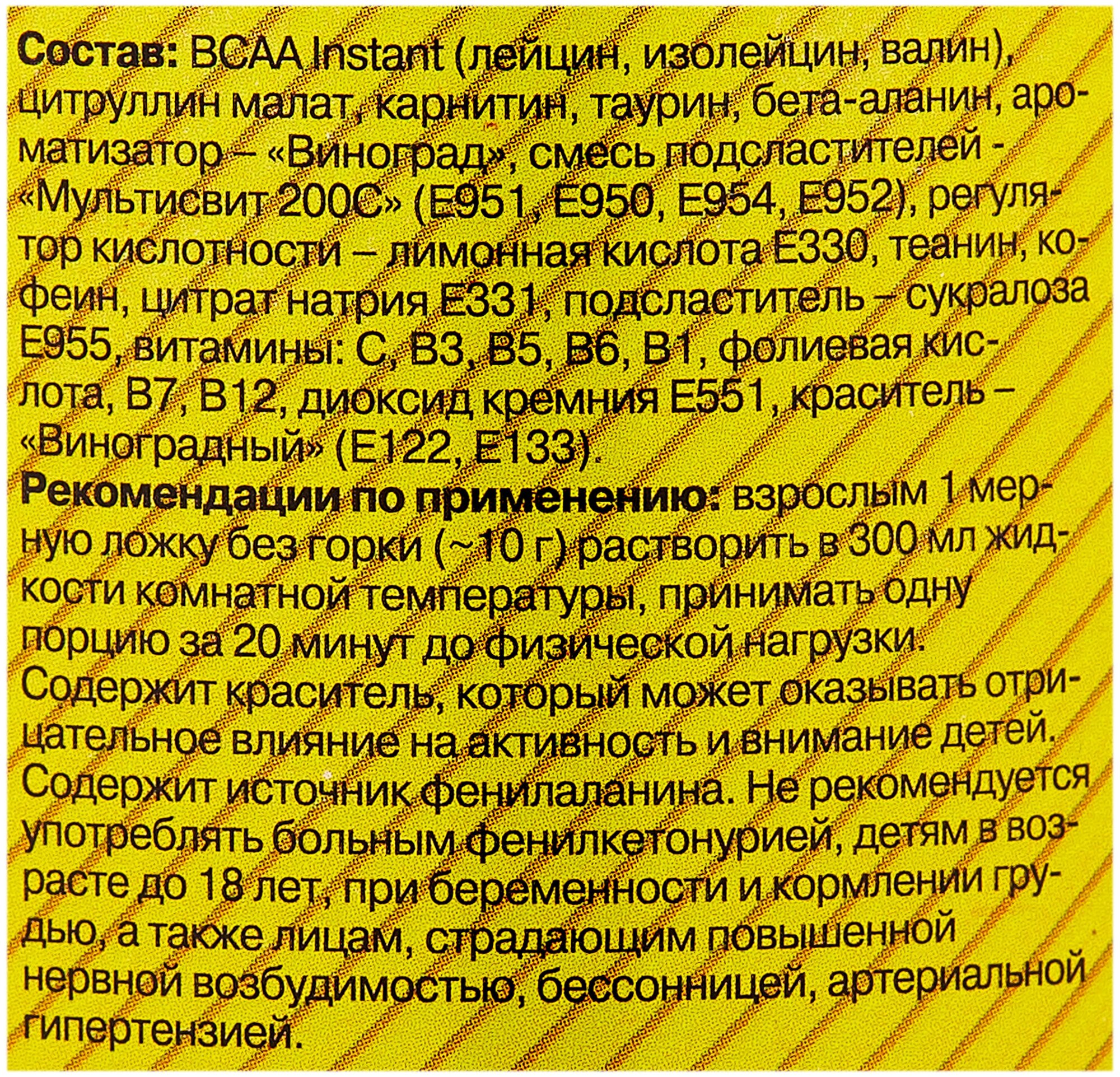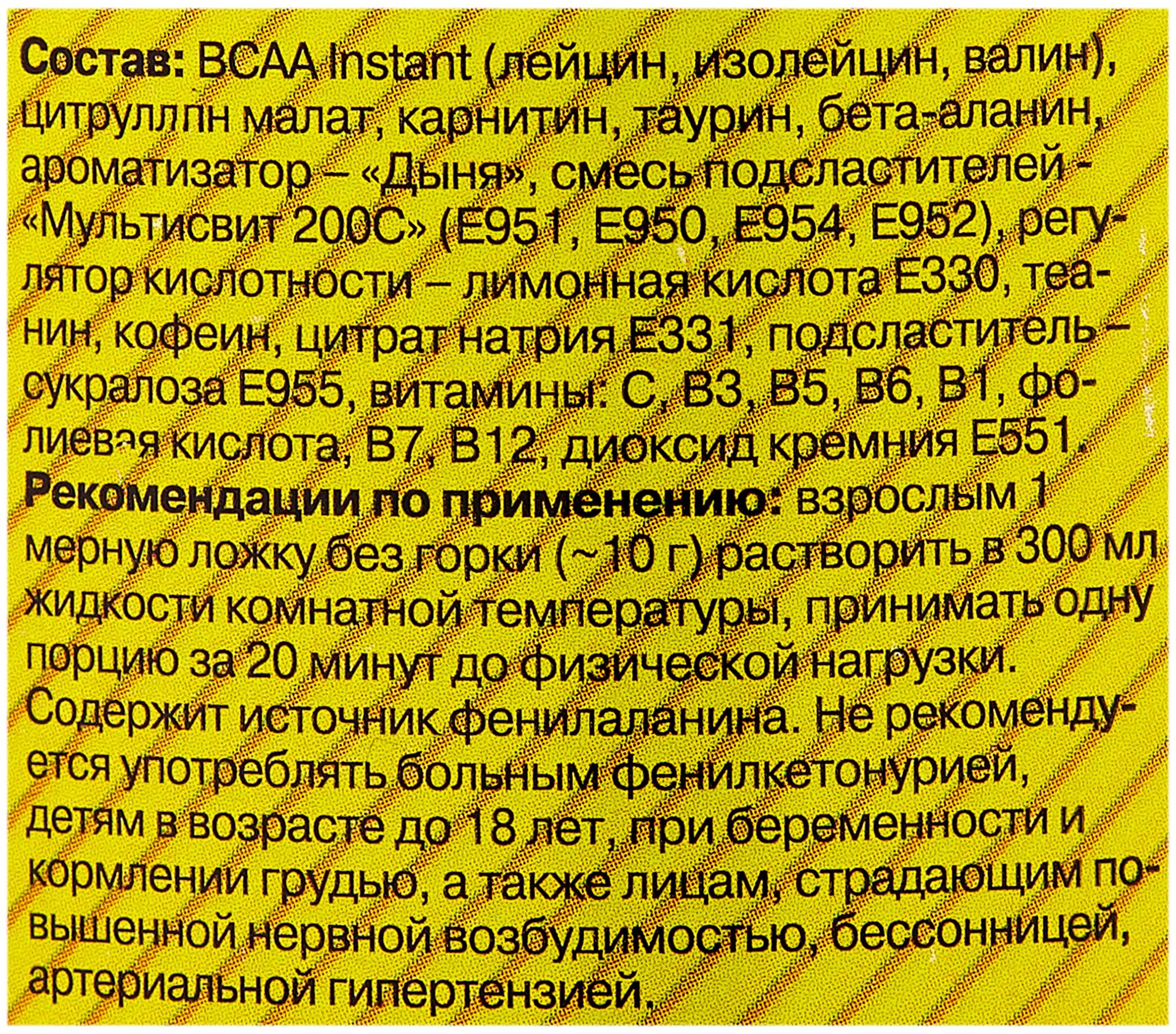 Type: BCAA, amino acid, amino acid complex, product form: powder, main ingredient: carnitine, taurine, citrulline, dietary features: no aspartame, no maltodextrin