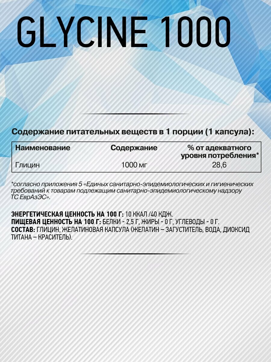 Type: amino acid, dosage form: capsules/tablets, main ingredient: glycine