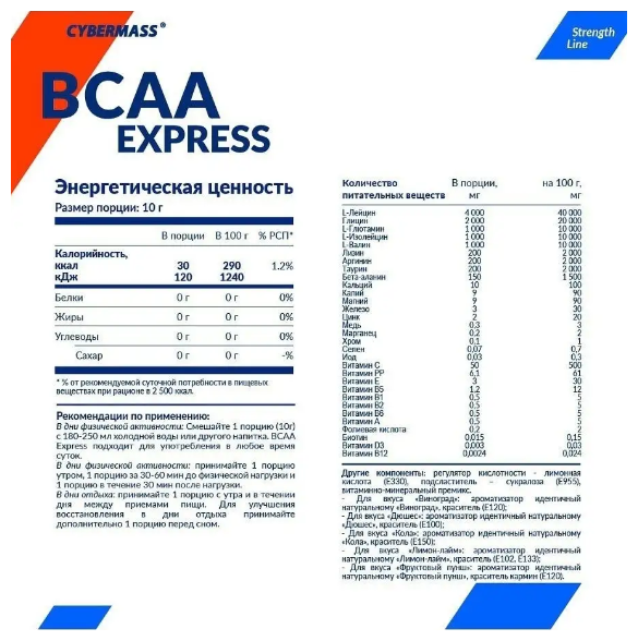 Type: BCAA, amino acid complex, formulation: powder, main ingredient: valine, isoleucine, leucine, dietary features: aspartame free, gluten free, lactose free, maltodextrin free
