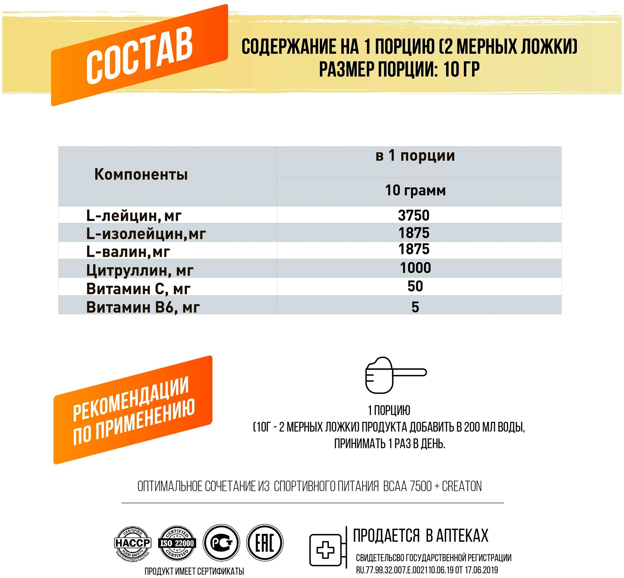 Type: BCAA, form of release: powder, main ingredient: valine, isoleucine, leucine, dietary features: no aspartame, no maltodextrin, no sucralose