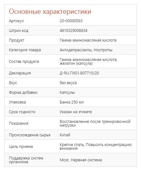 Type: amino acid, dosage form: capsules/tablets, main ingredient: GABA, dietary features: no aspartame, no gluten, no maltodextrin, no sucralose