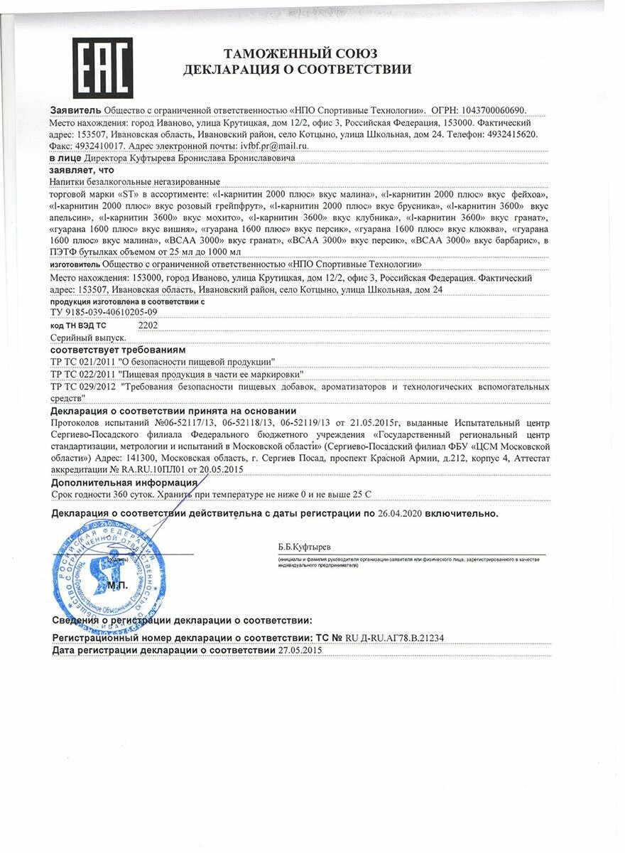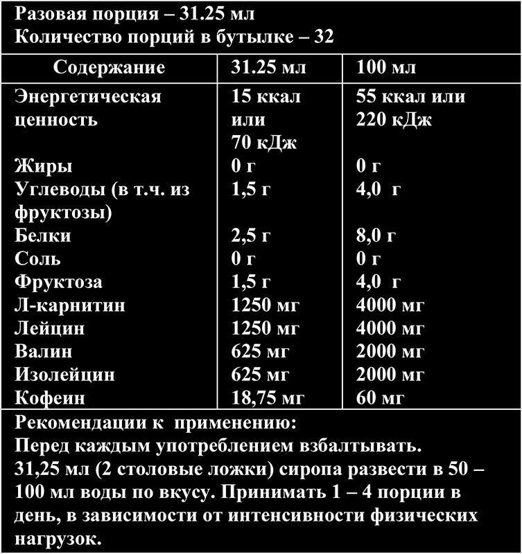 Type: BCAA, release form: solution, main ingredient: valine, isoleucine, carnitine, leucine